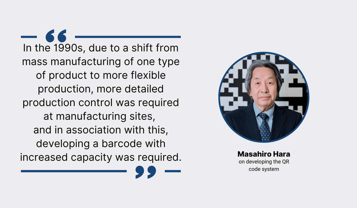 This finally happened in 1994 when a team led by Masahiro Hara developed Quick Response (QR) codes for the Japanese company Denso Wave.