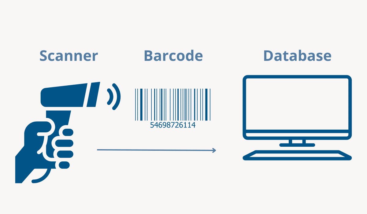In essence, the barcode contains data, the scanner reads it, and the database connects the data with products.