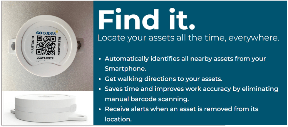 These beacons emit signals detected by the GoCodes Asset Tracking app on your smartphone.