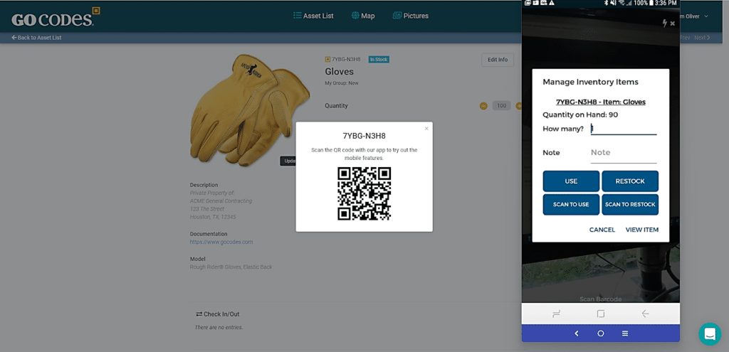 By entering this number into your asset-tracking app, now anyone taking gloves out of the container (or putting new ones in) can simply use the app to record that fact.