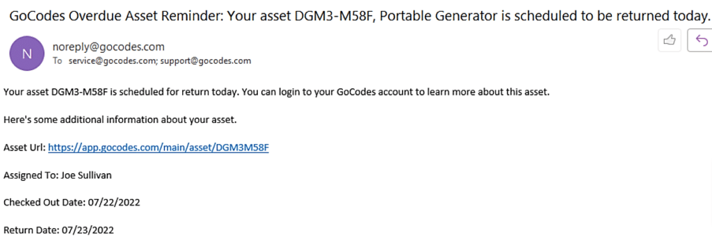 In such cases, asset-tracking software can be configured to send users timely email and in-app notifications, reminding them to return the asset.