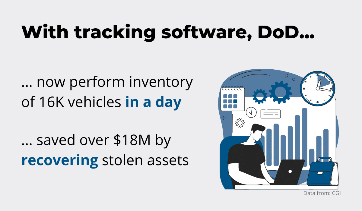 Once the Department of Defense (DoD) adopted asset tracking for their 16K vehicles, they achieved impressive results, conducting their inventory in a day where it once took them a year to complete it.