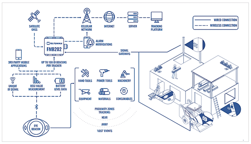Although Teltonika’s Eye beacons are designed to work in conjunction with their trackers, they can also be purchased independently and used with a construction company’s own tracking application.