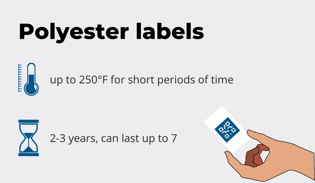 However, even though it’s not recommended to use them in high temperatures for prolonged periods, polyester labels can withstand temperatures up to 250°F.