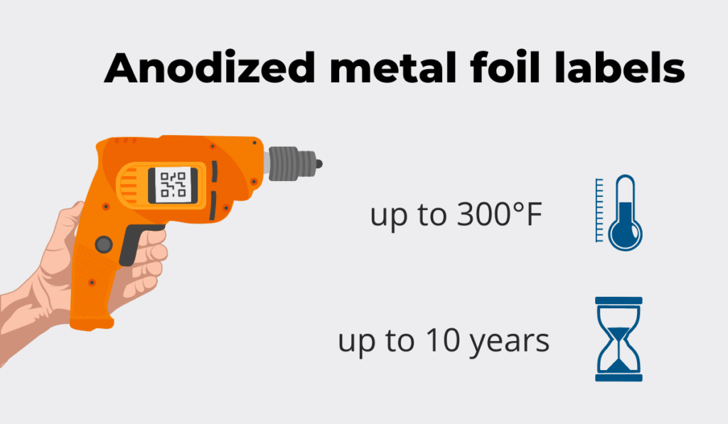 The only downside to metal foil labels of this type is that they can be fairly easy to remove, so they don’t offer as much protection from theft as other types.
