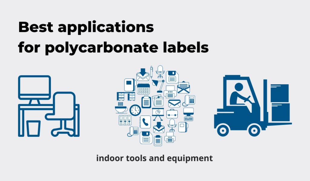 You should use polycarbonate labels indoors. However, this doesn’t mean the labels aren’t durable. Quite the contrary, such tags are resistant to stains, abrasion, moisture, corrosive chemicals, heat, and flames.