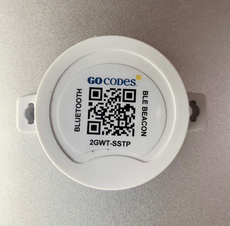 For example, this Bluetooth beacon (used for real-time asset tracking within a limited area like a warehouse or construction site) also has one of the barcode types—QR code—we’ll discuss below.