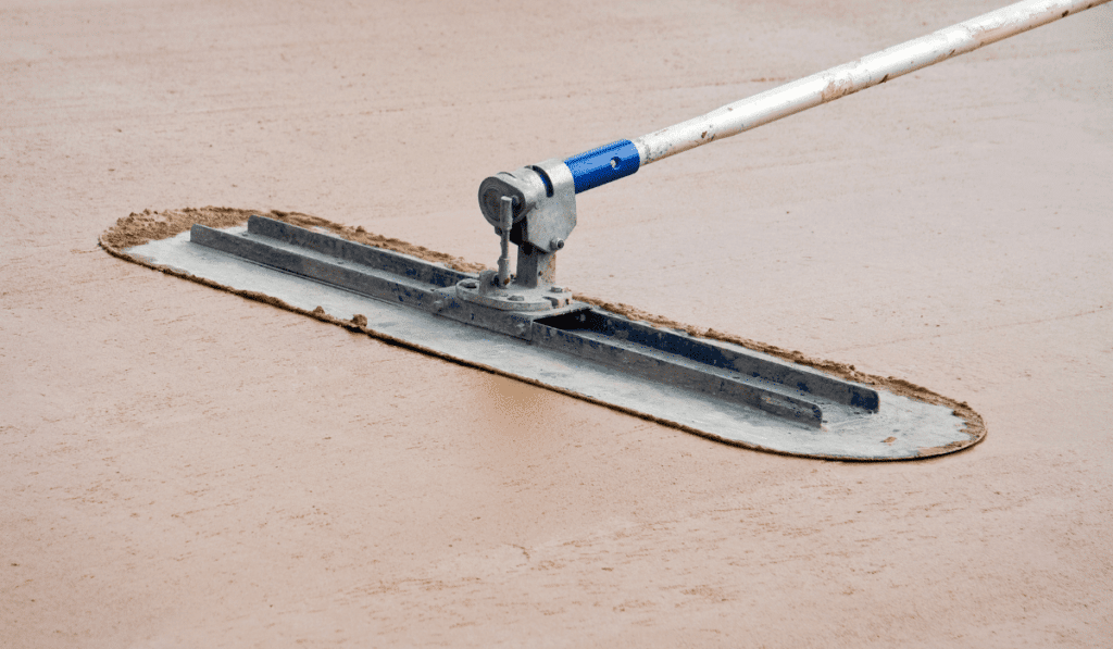 Contractors use floats to level the surface of the concrete. With every pull backward, a float will cut the heights of the concrete surface and fill in the lows, leaving an even surface of freshly laid concrete behind.