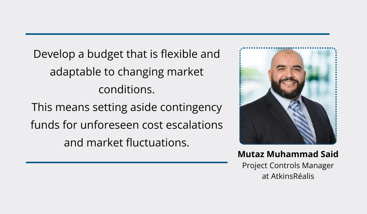 Mutaz Muhammad Said, Project Controls Manager at the engineering and project management firm AtkinsRéalis, highlights that developing a flexible budget is key.