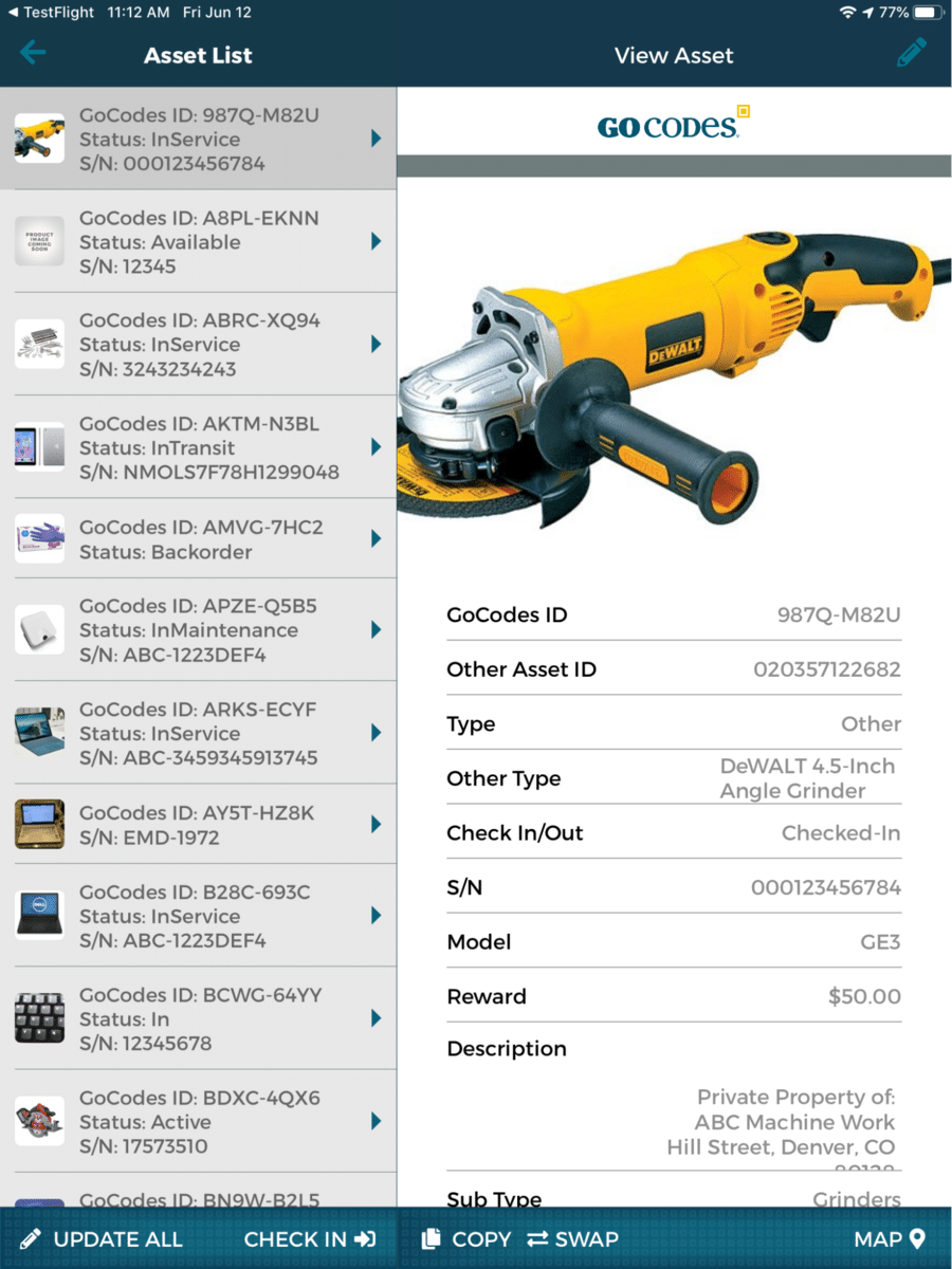 GoCodes Asset Tracking is a tool and equipment tracking solution that is comprised of cloud-based tracking software, durable QR code tags, and an in-app scanner.