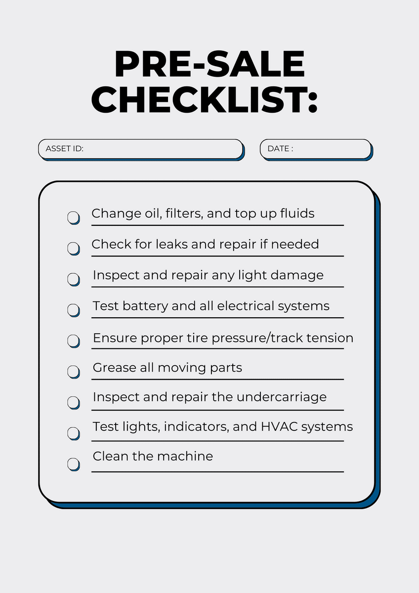 For starters, a thorough inspection will help you identify any issues that could lower your equipment’s value on the market.