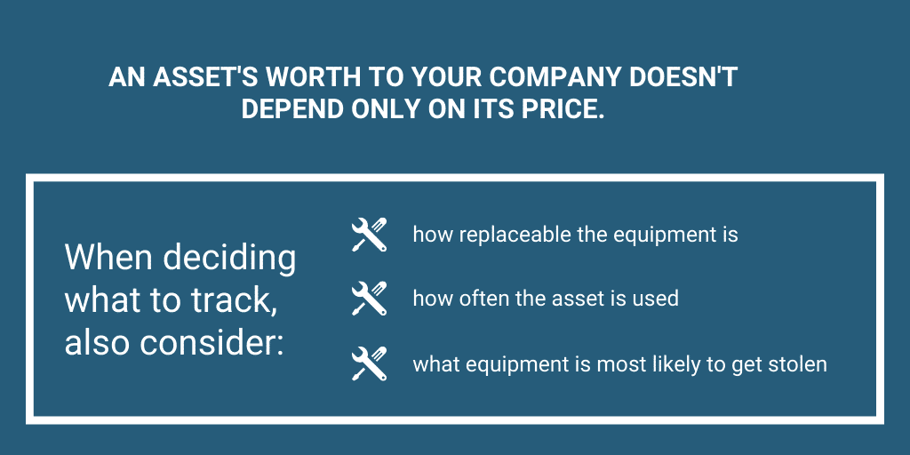 Some assets are worth more than others, and that’s expected. Of course, you’ll want to track equipment you spent a fortune on over a cheap one.