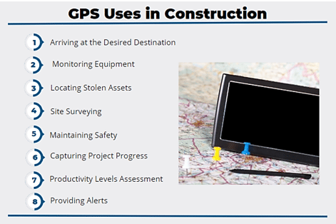 Overall, GPS is a satellite-based navigation system that enables construction companies to determine the precise location and track movements of construction assets such as vehicles, equipment, and tools.