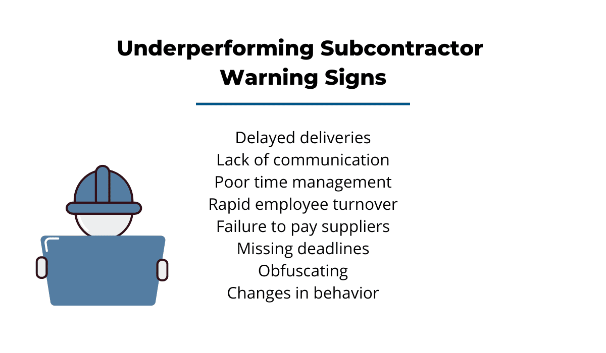 What can a project manager do in this situation? You can take notice of certain warning signs that a subcontractor is underperforming. Here are some.
