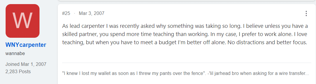 Like this contractor puts it, unless they’re working with someone who is on their level when it comes to knowledge of the job, your field workers will feel like they’re mentoring (even when it’s not their responsibility).