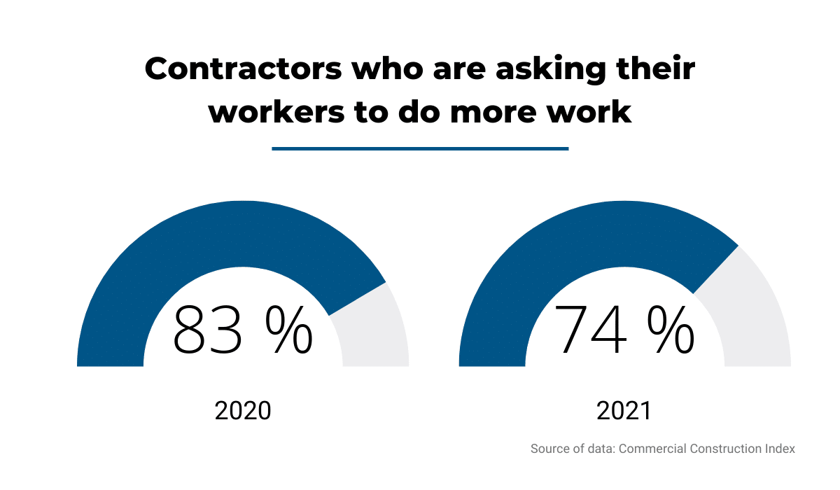 Yet, if you believe this is a rare phenomenon, the latest research by the Commercial Construction Index revealed that 74% of contractors are asking skilled workers to do more work.