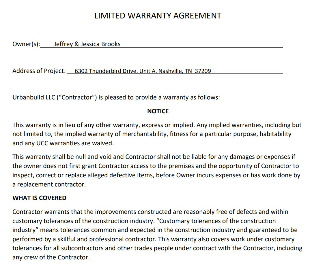 Warranty agreements often contain boilerplate language, as seen in the example above, which shows just the first few sections of the warranty.