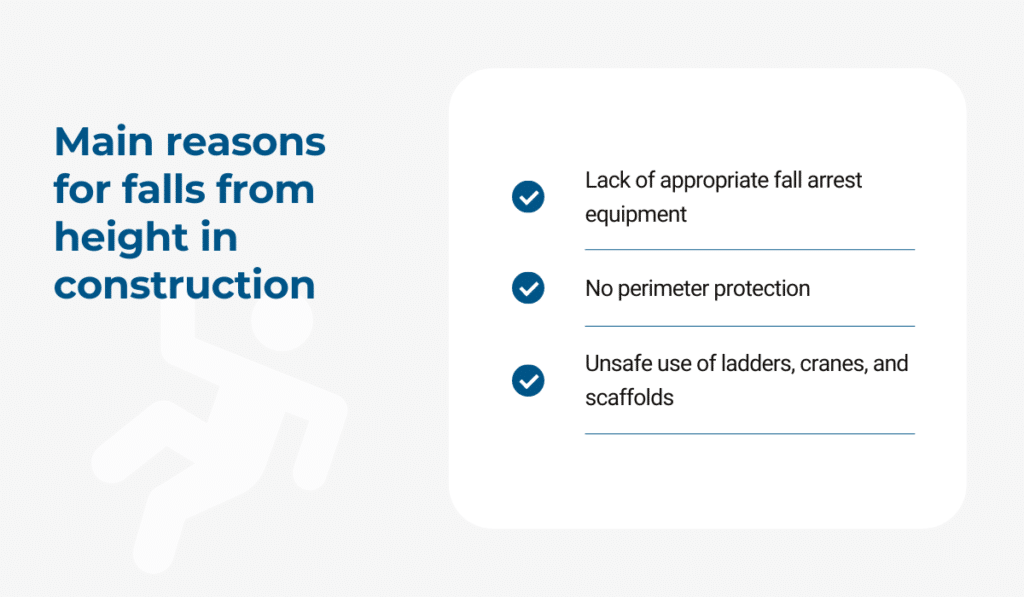 Therefore, without proper regard to safety protocols and adequate training, falls from heights are likely to occur. Some of the main reasons for construction site falls are:
