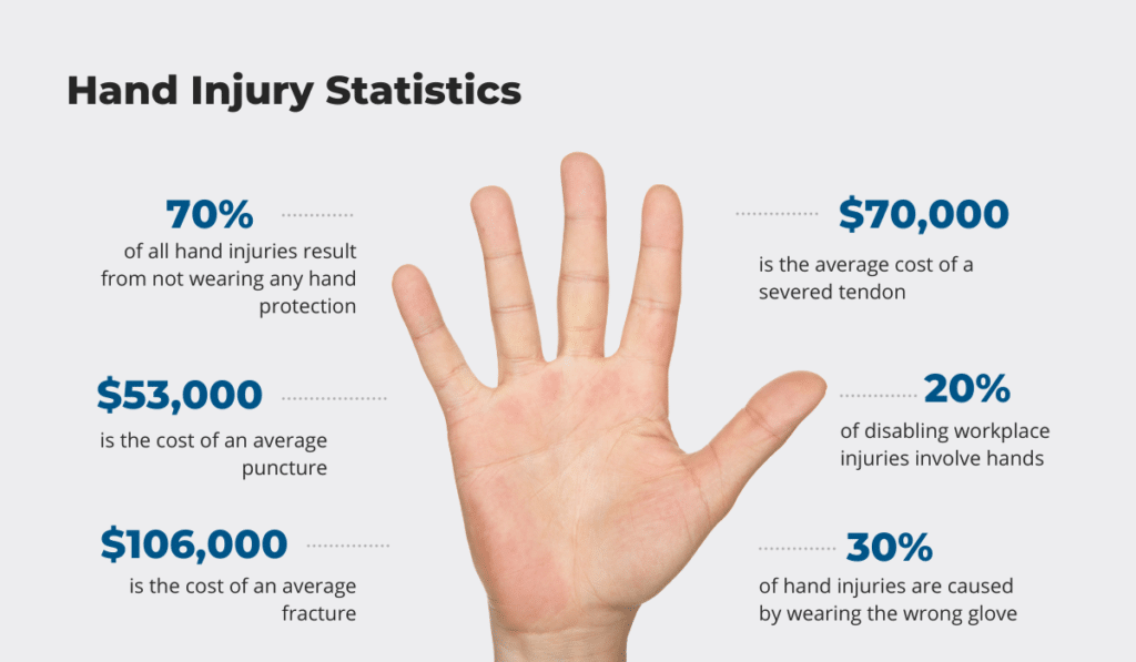 Around 20% of disabling workplace injuries involve hands. That’s one in five work-related injuries.
