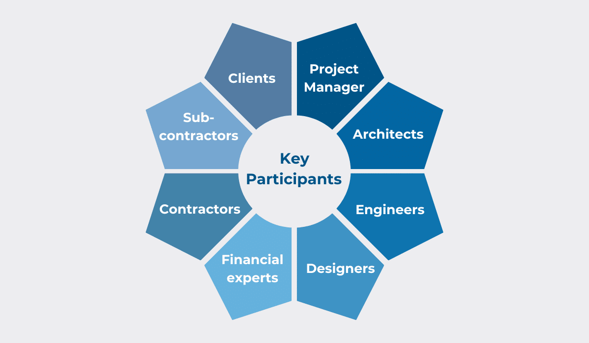 You have the project manager steering the ship, architects, engineers, and designers contributing their expertise, and financial experts aligning the budget with the project scope.