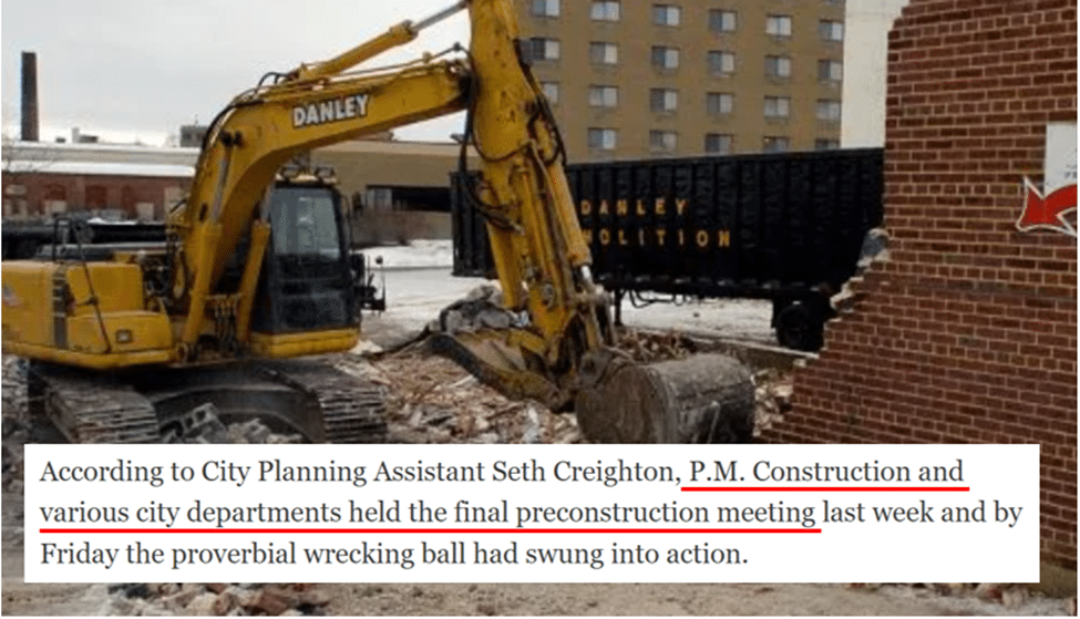 The required building permits and approvals should already be issued at this stage, but there are still details that need to be finalized before actual construction (or demolition, as in the example below) can start.