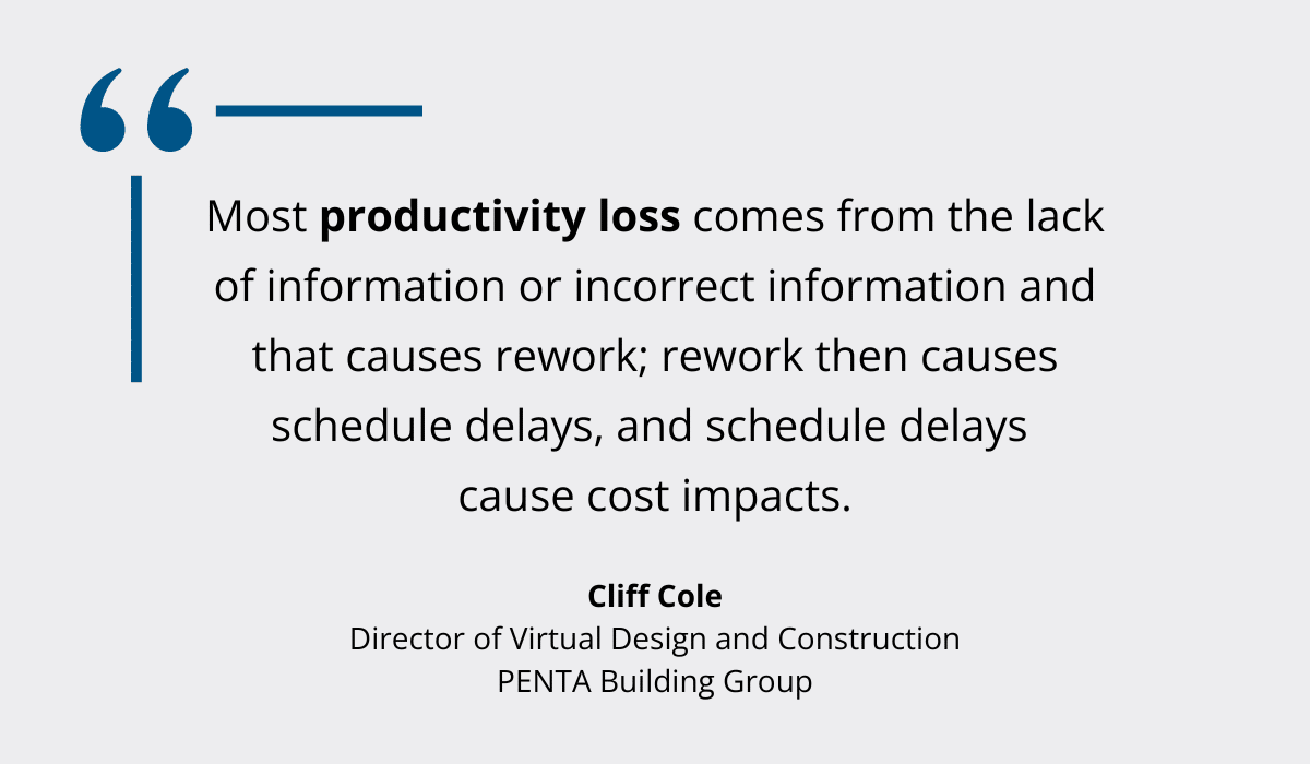 As explained by PENTA Building Group’s Cliff Cole, poor data and resulting reworks account for some major productivity losses.