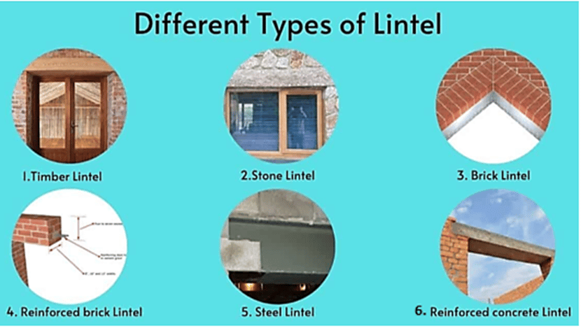 Lintels are categorized according to the material they’re made from, as shown below, courtesy of Allabout Civil: