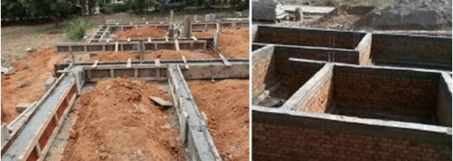 The result is a concrete footing on which plinth beams will be constructed.
