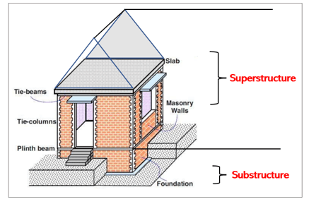 As you can see, the building’s substructure is everything below the plinth beam, including the foundation.