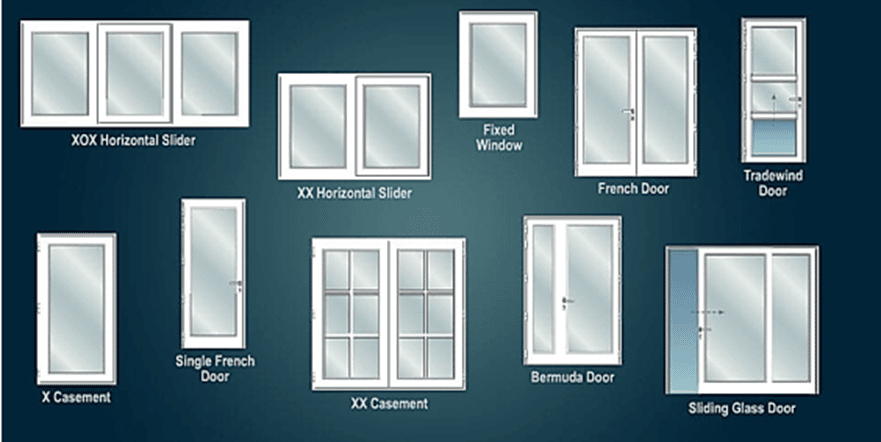 Door and window frames can be made from timber, aluminum, steel, fiberglass, and vinyl (PVC).
