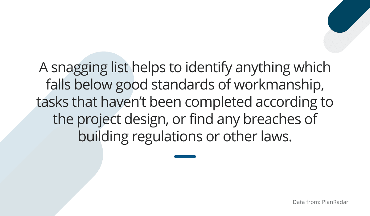 Snagging lists ensure that everyone involved in the project is on the same page about what fixes need to be made before the project is completed.