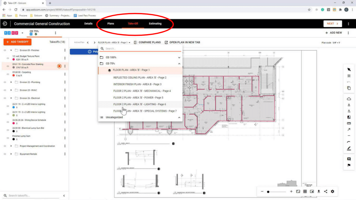 Solutions like Esticom, a part of Procore’s all-in-one construction suite, can take data directly from project drawings and documents, and automate both material takeoff and estimation.
