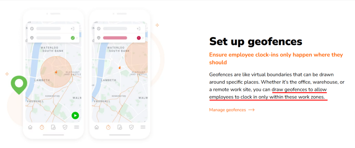 By drawing these boundaries around work areas, workers won’t be able to abuse clock-in.