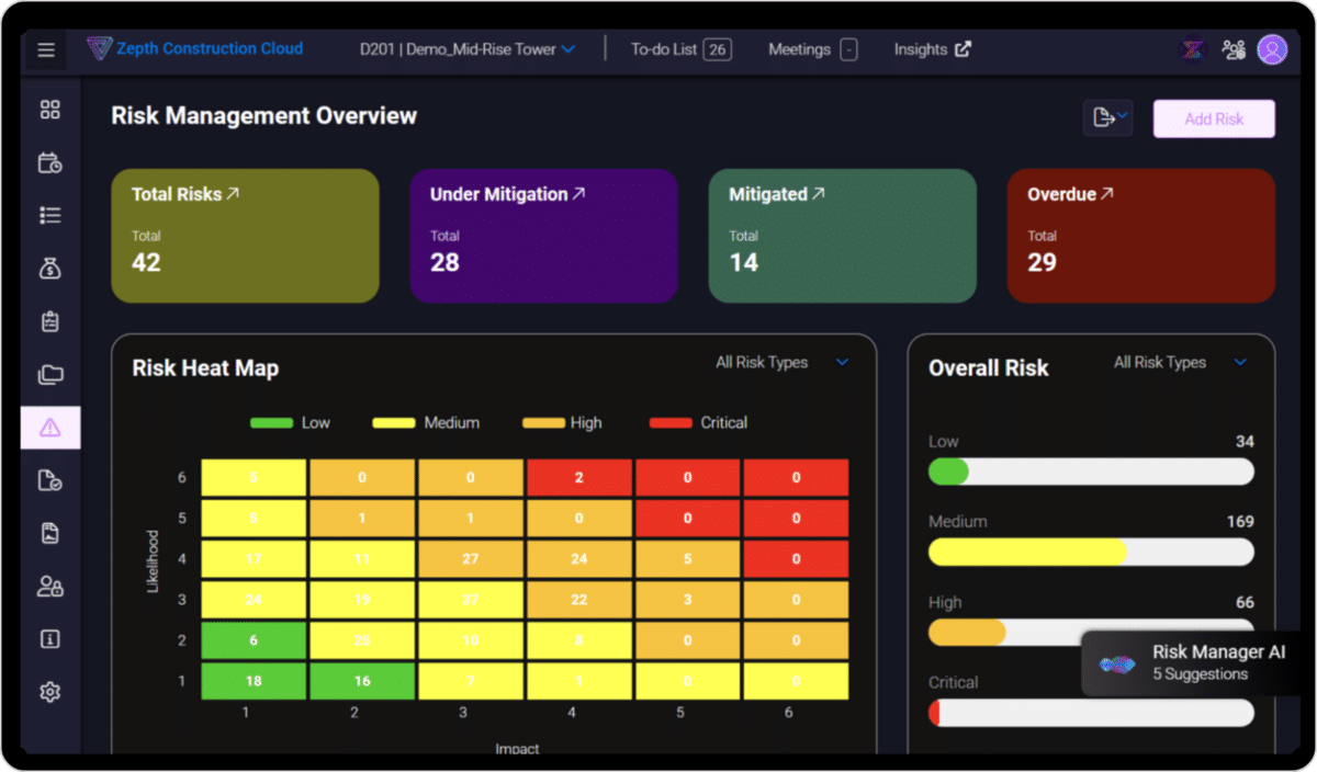 One such software is Zepth, a comprehensive construction management platform that offers a useful overview of key risks and their ratings.