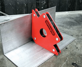You can see how the welding magnet makes welding easier in the picture above. Not only are the welder’s hands freed, but the materials are held together at a perfect 90° angle.