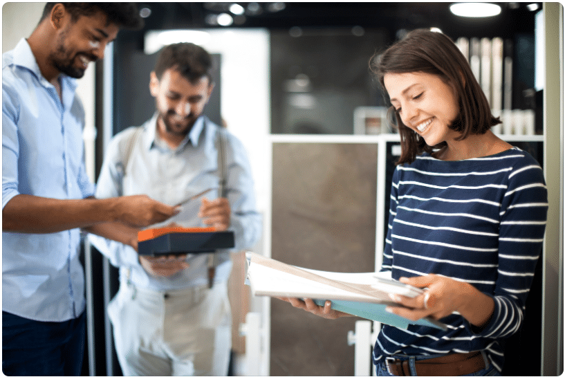 Next, they also review product samples from contractors (e.g., the tiles) so they’re aligned with the proposed project’s plans.