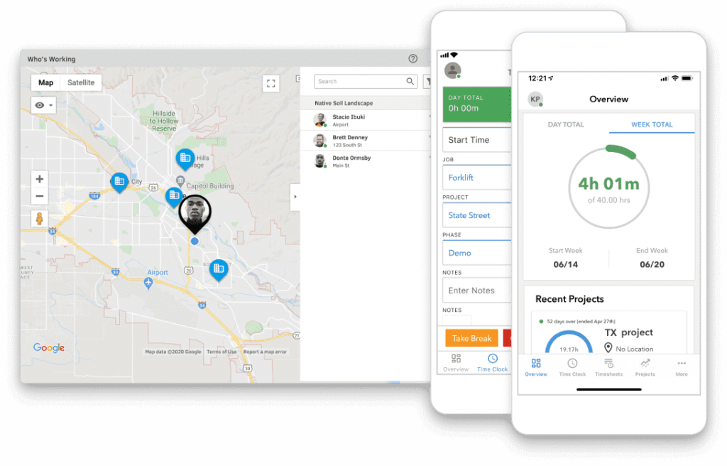 In the photo below, you can see an example of a time tracking app with GPS tracking features: