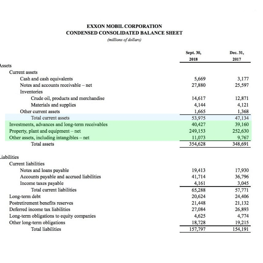 Here is an example of a balance sheet from Exxon Mobil.