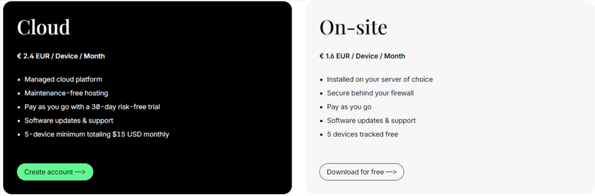 Pricing is straightforward, with two options available depending on whether you opt for cloud-based or on-premise solutions.