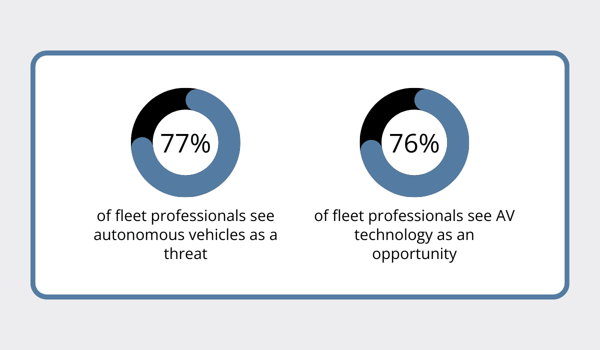 According to a Shell report, fleet operators are split: 77% see AVs as a threat, while 76% view them as an opportunity.
