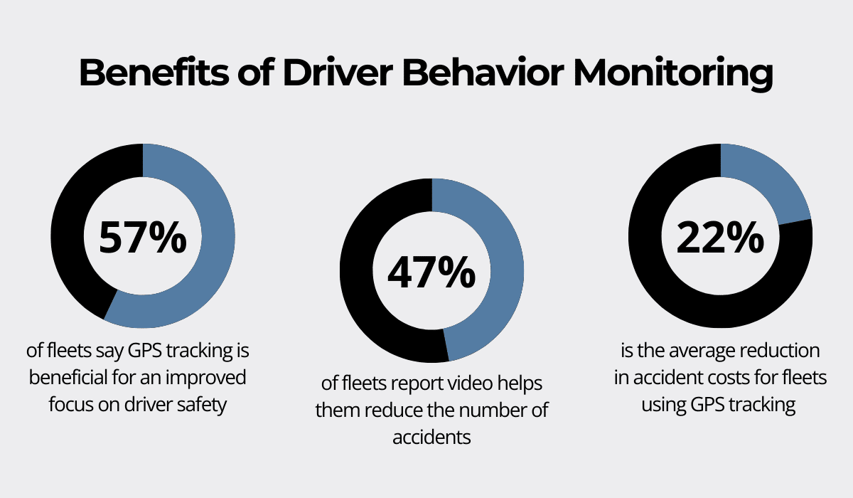 For example, 57% of companies say GPS fleet tracking improves focus on driver safety, while 47% highlight video in particular as very effective in reducing accidents.