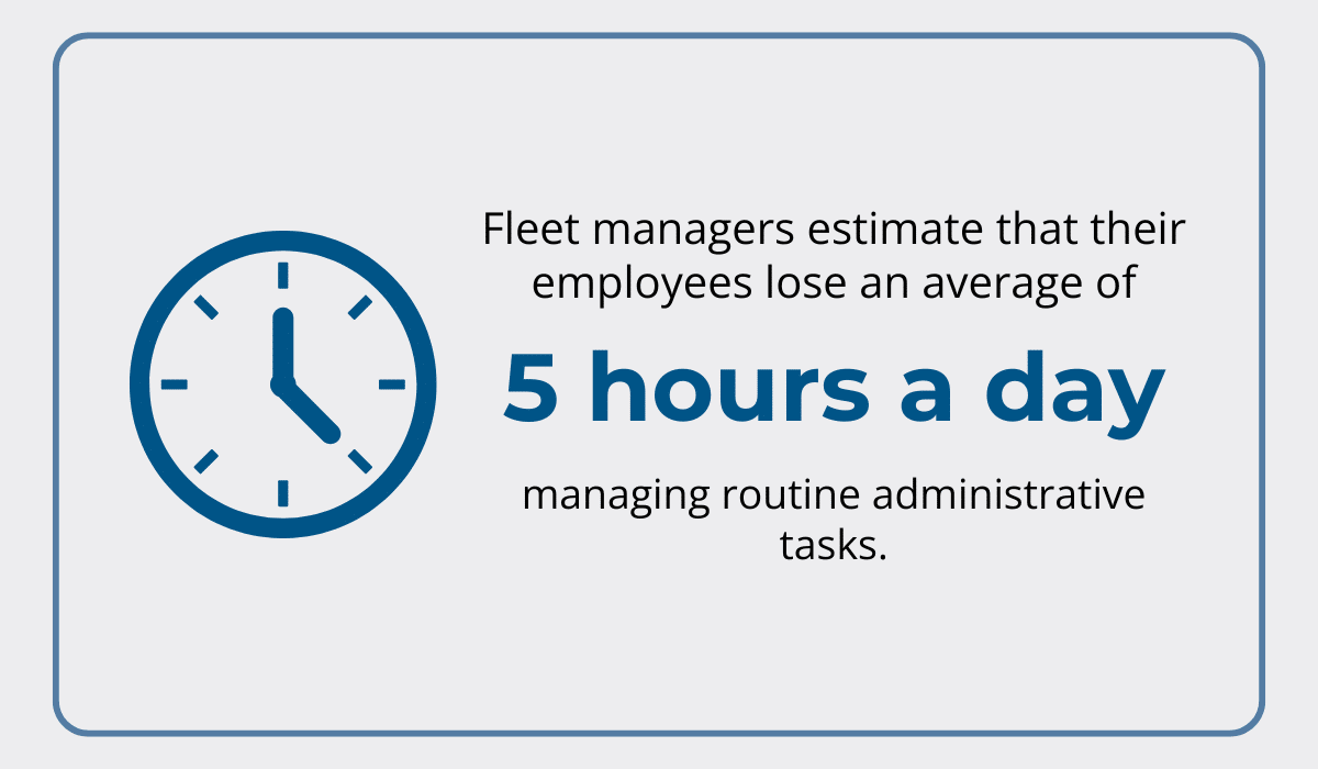 Fleet managers across the board estimate their employees lose about 5 hours a day, or over 3 days in a 5-day workweek, on similar routine tasks.