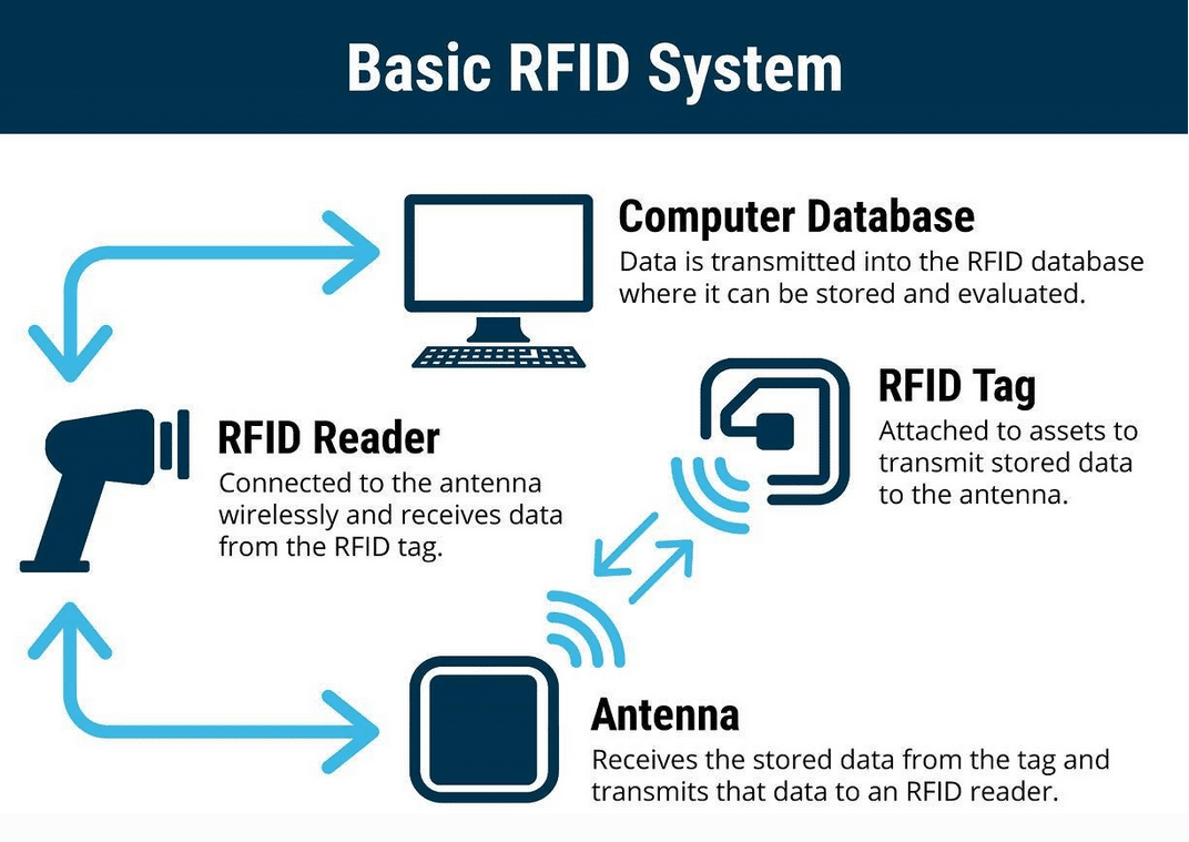 In this system, RFID tags are placed on items, and inventory control software records information each time the tag is tracked.