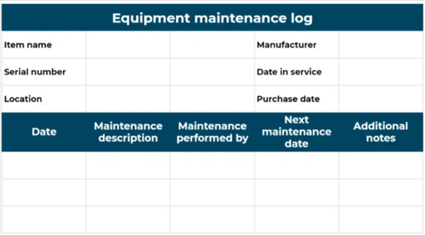 The same applies when equipment breaks down or causes an accident, and the maintenance log can be used to support insurance claims.