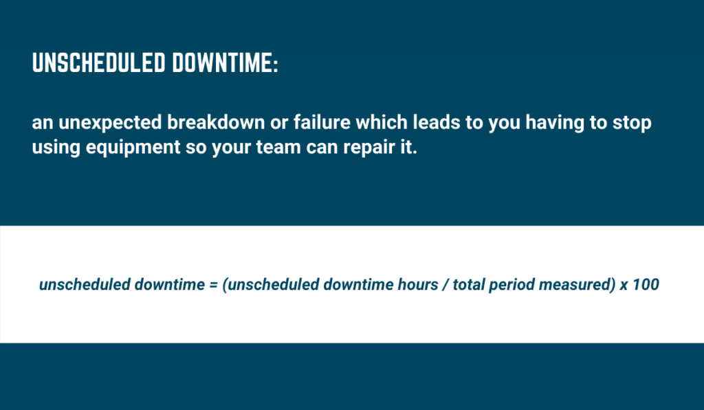Unscheduled downtime is an unexpected breakdown or failure which leads to you having to stop using equipment so your team can repair it.