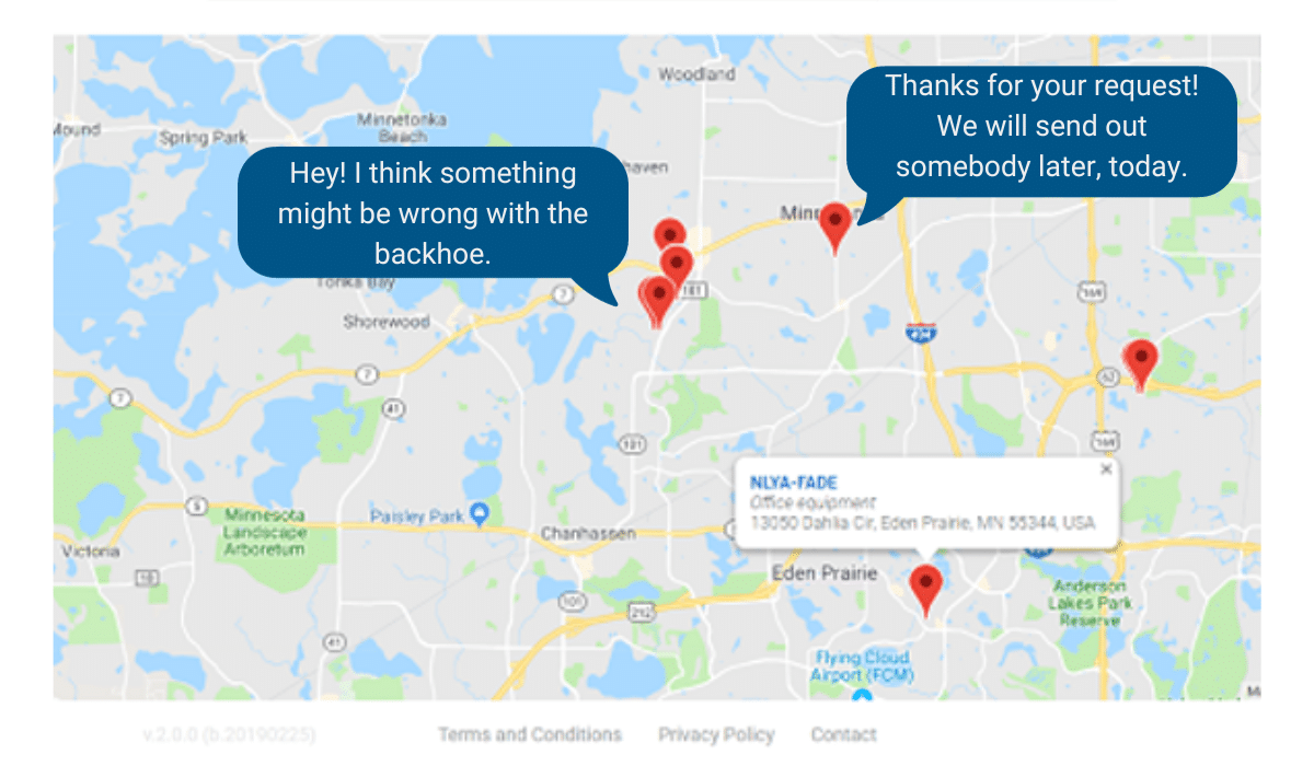 This feature enables users to call for equipment service or inspection wherever they are, with minimal effort required.