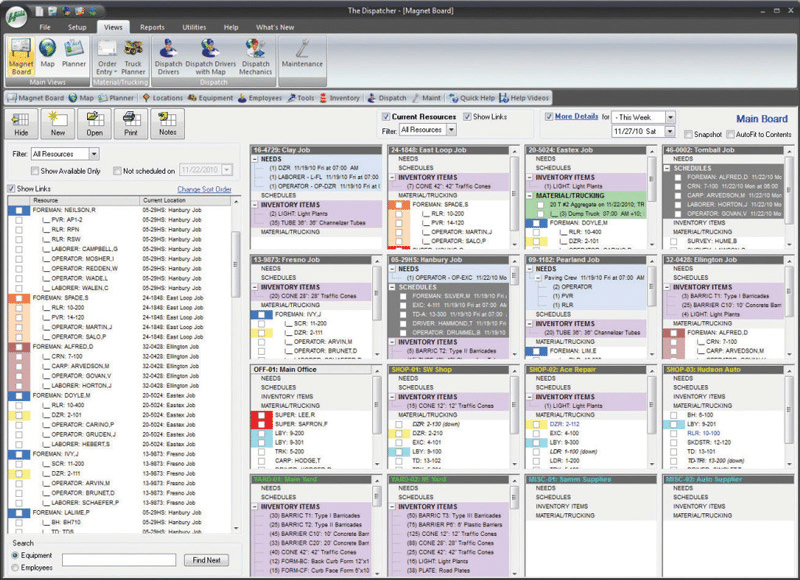 This tool allows companies to manage employees, crews, equipment, materials, and trucking across multiple job locations.