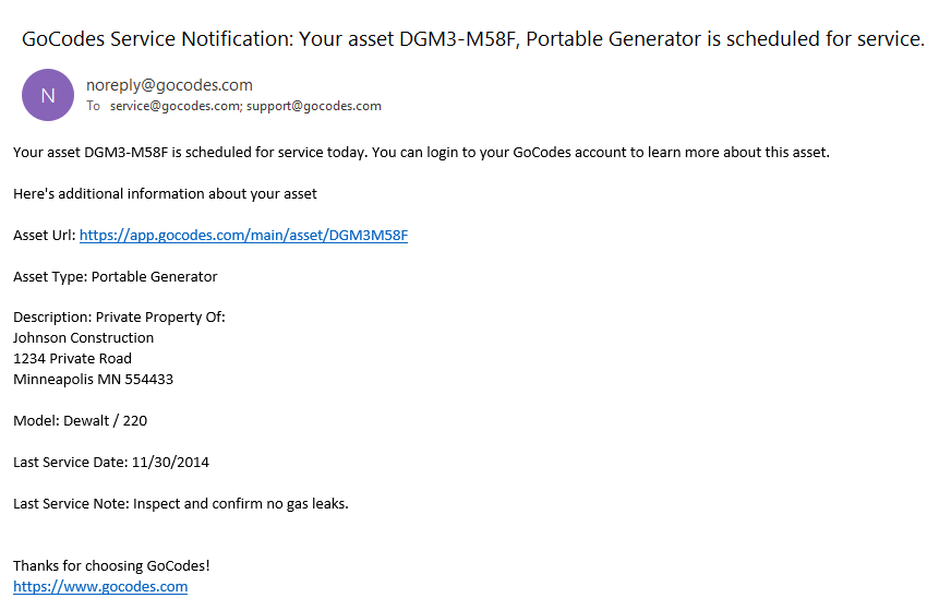With GoCodes Asset Tracking, for instance, you can also get scheduled service notifications via email.