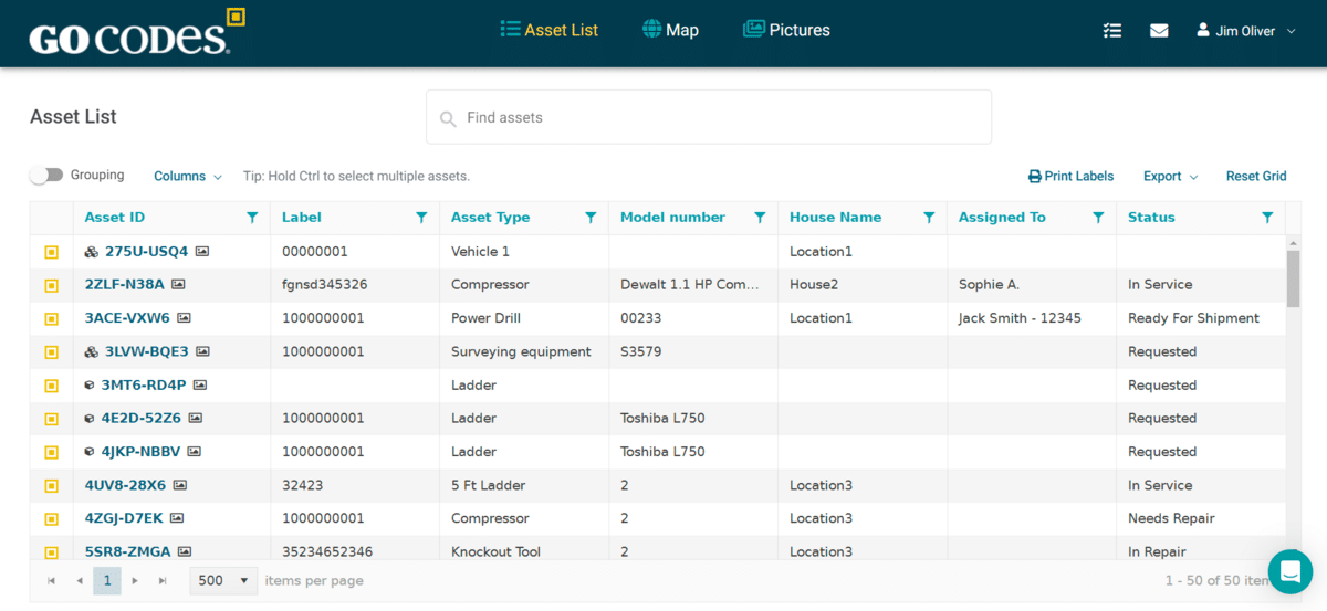 Additionally, given that the layout of the GoCodes Asset Tracking Asset List resembles the spreadsheet look you and your crew are likely used to, using it is intuitive and doesn’t require a lot of training.