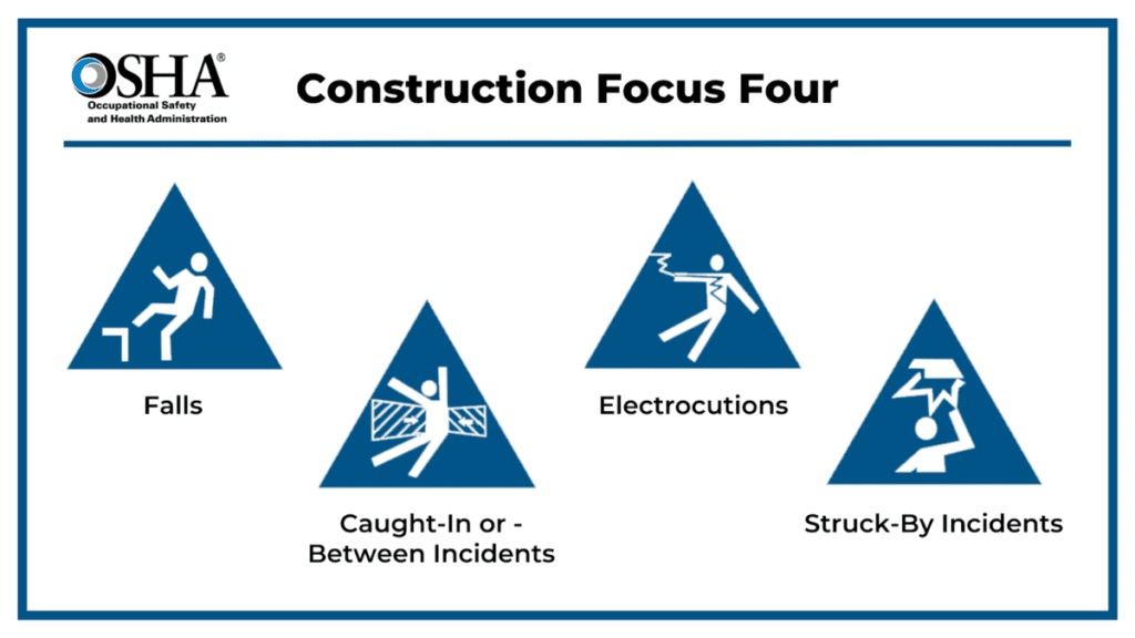 Of those, a majority fall under what the Occupational Safety and Health Administration (OSHA) defined as the “Construction Focus Four”, meaning the four leading causes of fatal injuries.